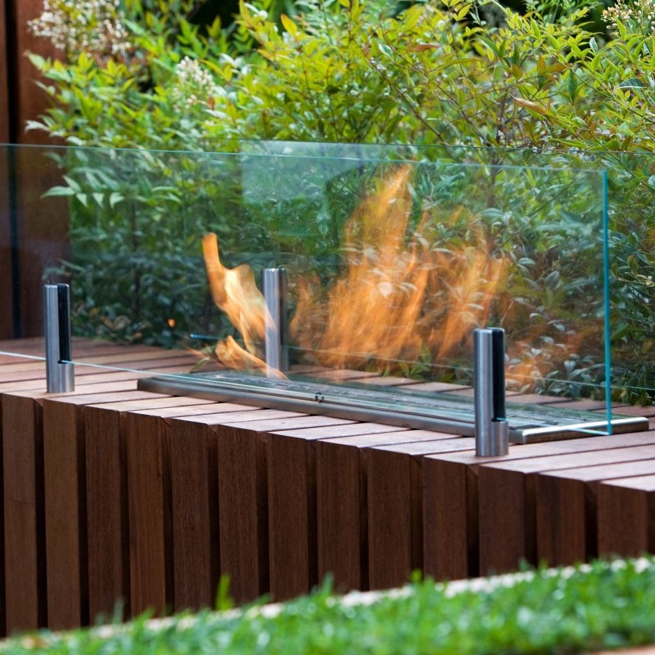 Diverse range of materials can be used in your bespoke fire – think concrete and hard timber benches, marble recesses, stacked stone walls, stainless steel – even metal barrels cut in half!