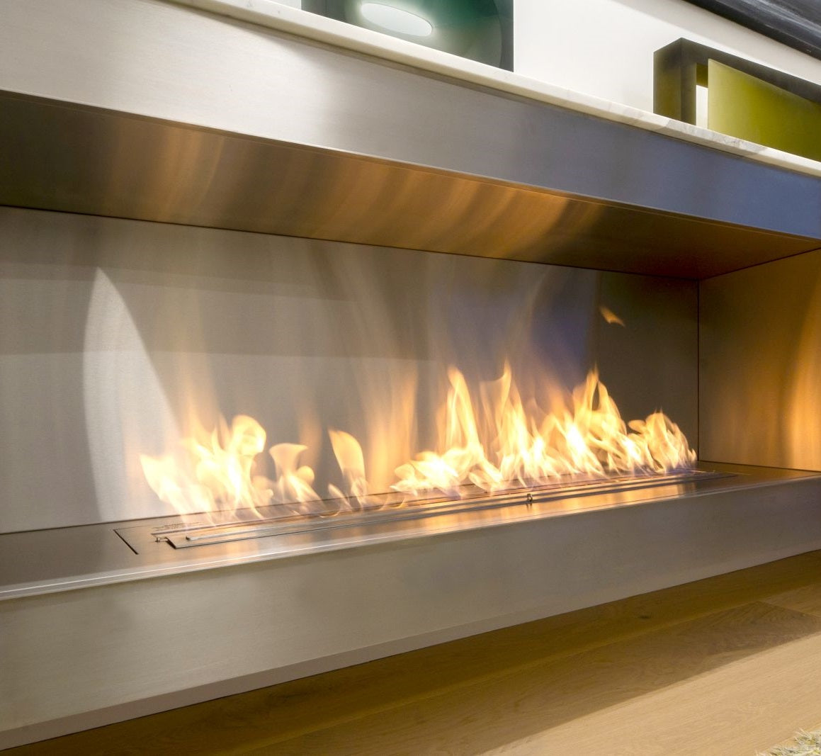 EcoSmart Fire’s ethanol fireplace burners allow you to bring your vision to life and create a truly unique and custom fireplace. Completely self-contained, our ethanol burners have no need for exterior tanks or utility lines and their stainless steel bodies make them suitable for both interior and exterior use. Easily integrate a round, square, or linear ethanol burner into media units, cabinetry, walls, pillars, stone benches and more to create your custom ethanol fireplace design. EcoSmart Fire’s ethanol fireplace burners are available in a range of sizes and can be placed side by side for a longer flame.
