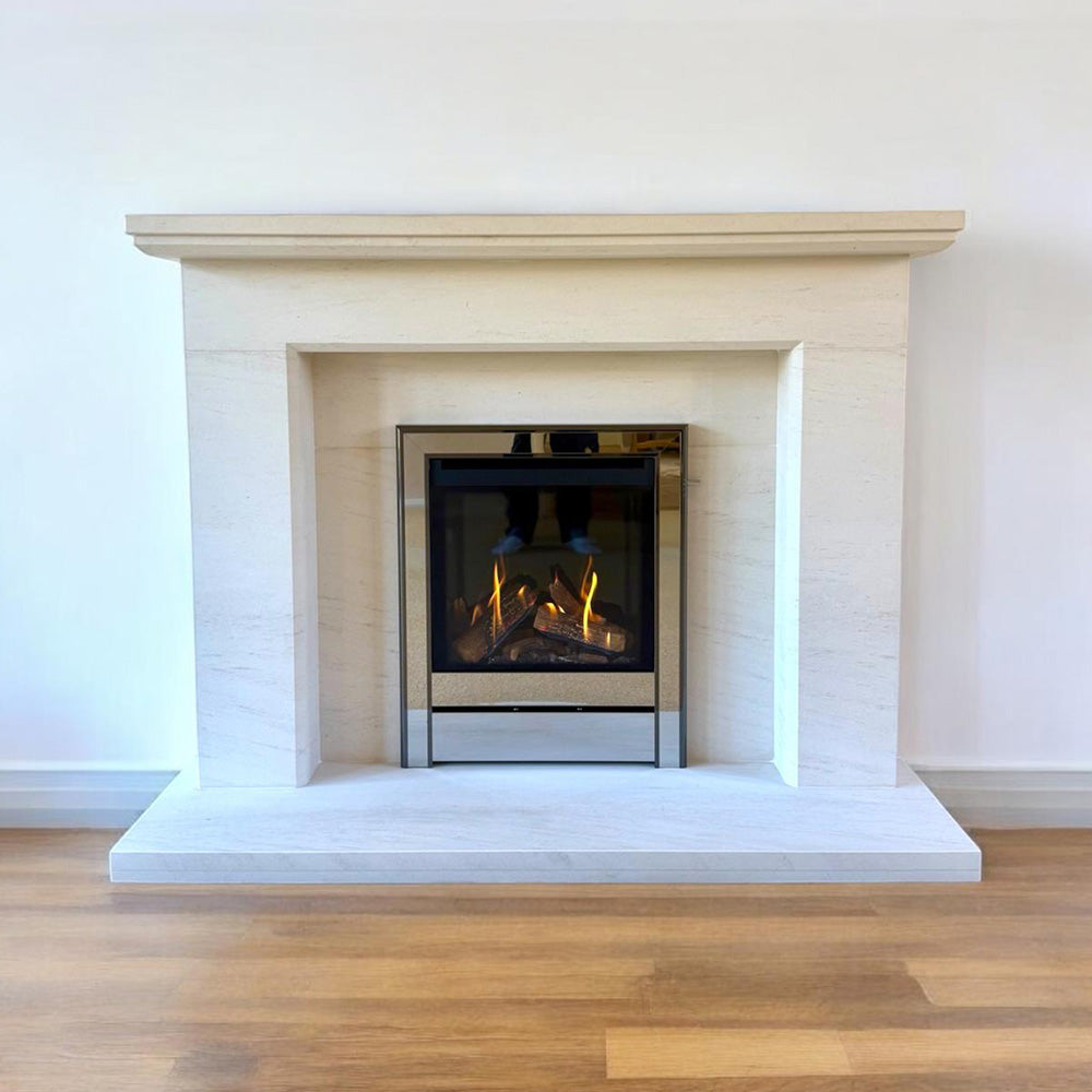 Suitable for wood-burning, gas, or electric stoves, the Finch can be paired with slate, granite, or limestone slips. The hearth is also available in matching materials and can be styled to your preference — boxed and lipped, flush, flat, or with a chamfered edge — for a completely tailored finish.