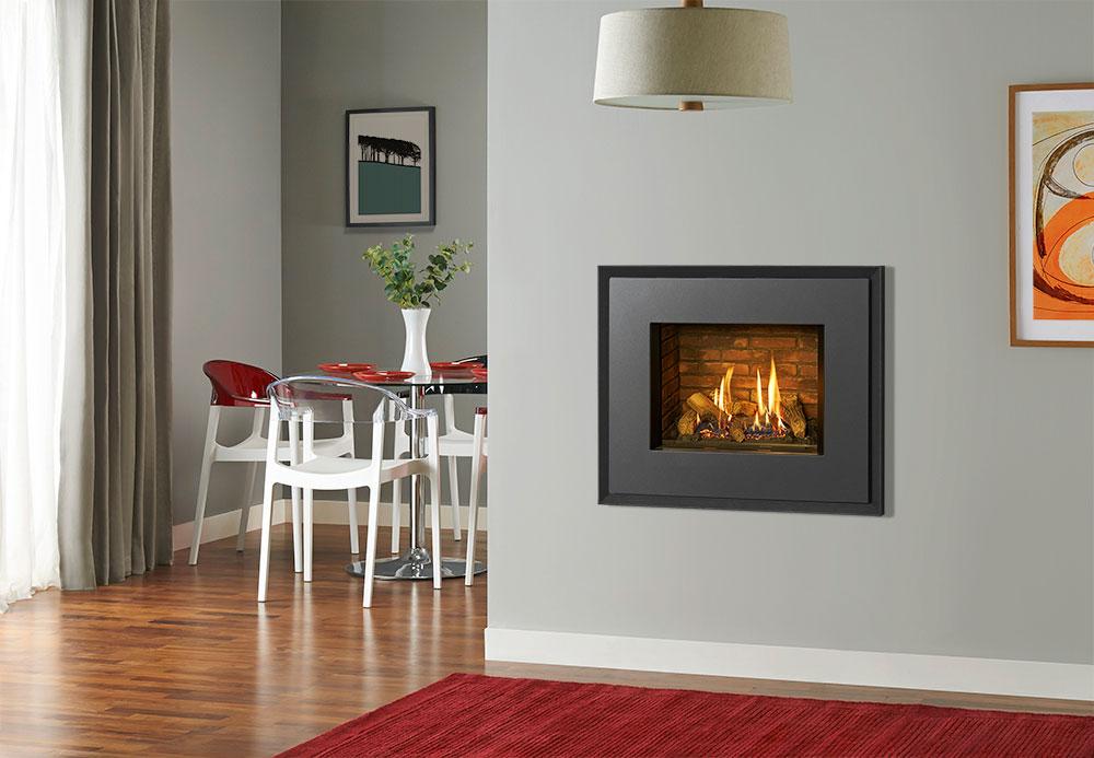 The Riva2 500 Evoke Steel gas fire focuses purely on sharp, strong definition achieved with a graphite back boldly framing the complementing graphite front.