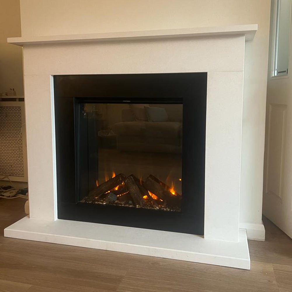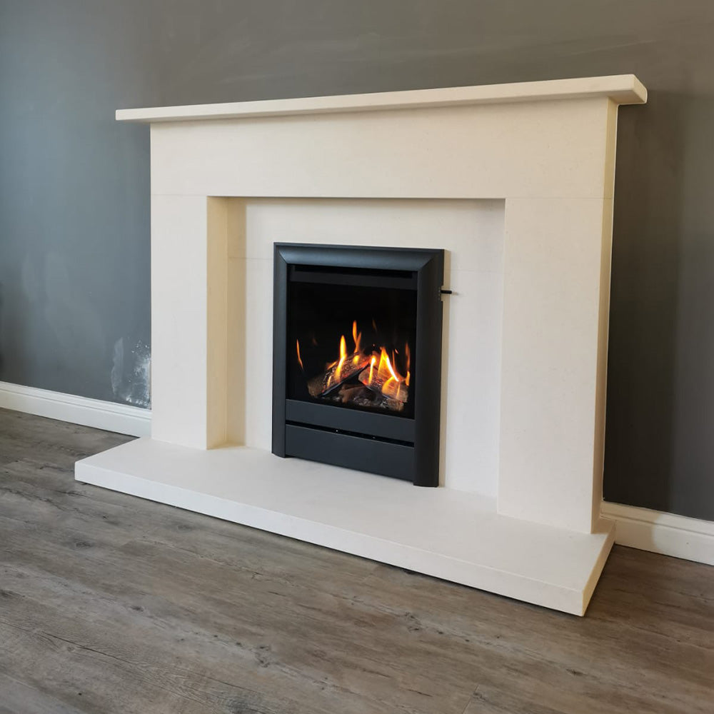 Available in Portuguese or Aegean limestone, this design also looks exceptional in light-toned natural marble, adding a luminous, refined finish. For further personalisation, it can be paired with a matching hearth or contrasted with granite or slate for a striking effect.