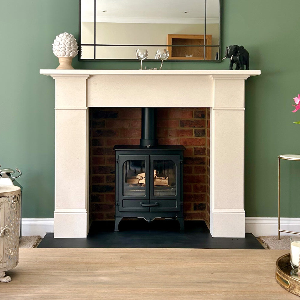 Expertly handcrafted in Aegean or Portuguese limestone, the Kensington can be fully made to measure and tailored to your chosen fire type. The hearth and slips are also available in granite, slate, or matching limestone for a cohesive or contrasting finish.