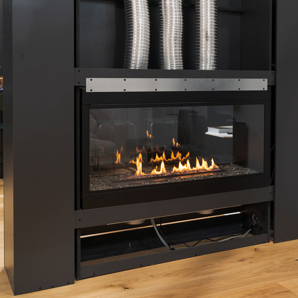Panorama fireplace comes with a complete set of components for an efficient distribution of heat.